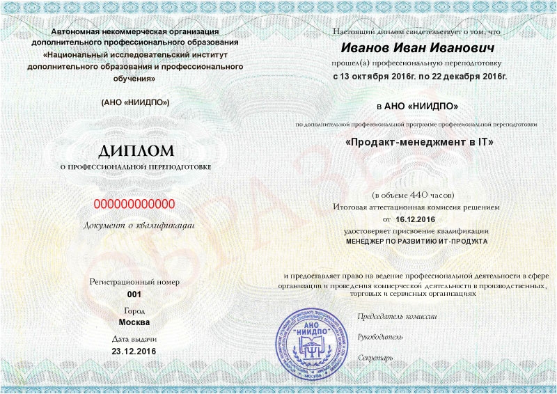 По итогам курса выдается диплом о профессиональной переподготовке (при условии, что у вас уже есть любое высшее или среднее профессиональное образование). Диплом вы получите после защиты итогового проекта и тестирования по материалам курса. Мы подготовим документ в течение 10 дней с момента завершения курса и при необходимости отправим его в ваш город заказным письмом.